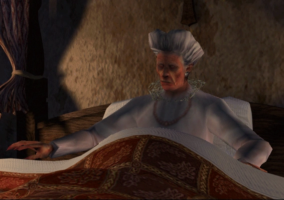 Cuando Aline llega en paracaídas a la azotea de mansión, después de que el avión se estrelló misteriosamente, ella fue capaz de lograr entrar a la mansión, ingresando por la ventana de la habitación de Lucy Morton. Aquí es donde Aline se encuentra con Lucy, una anciana ciega y madre de Alan Morton y Obed Morton.