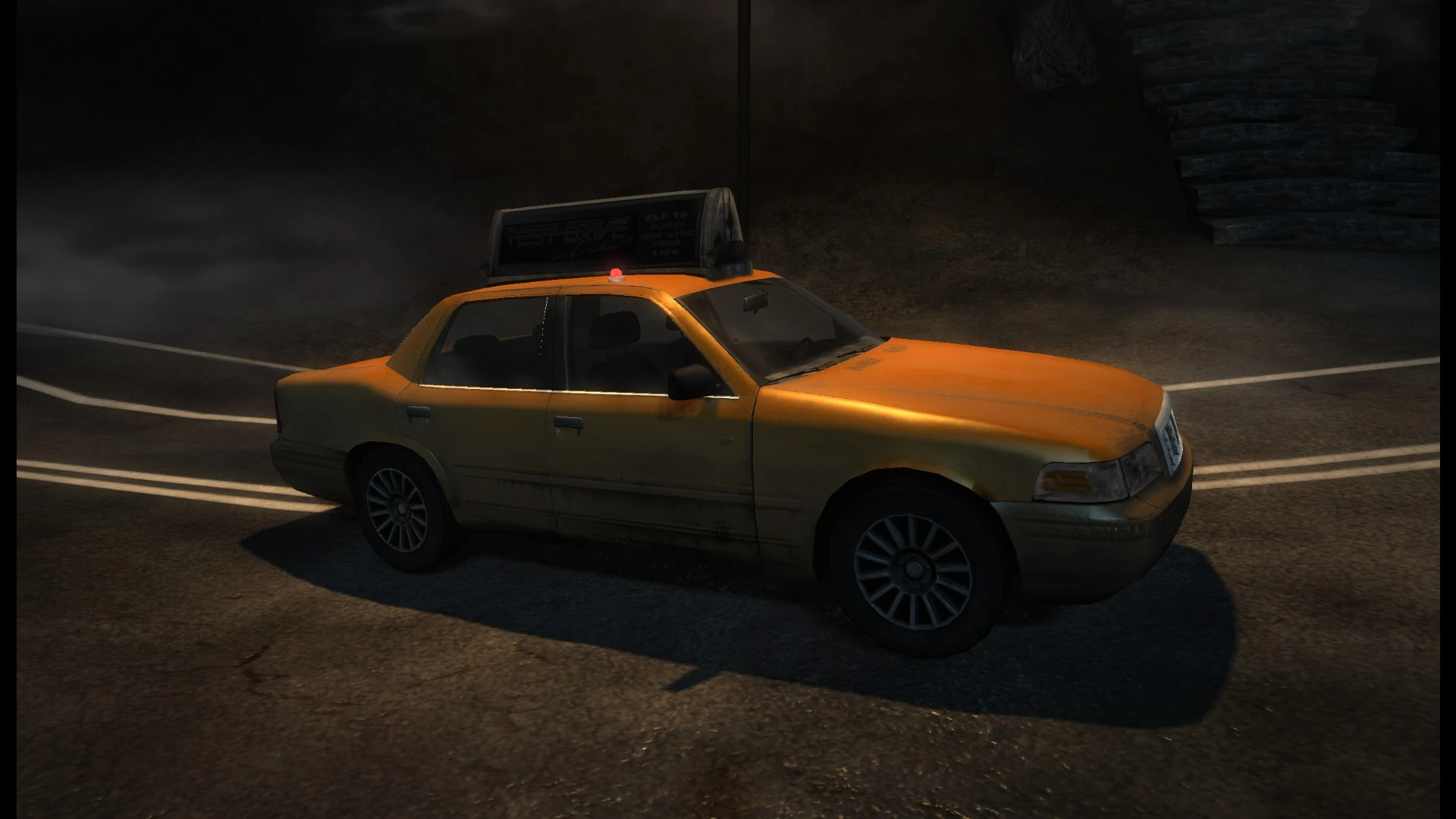Il primo taxi lo si trova nel parcheggio dell'albergo nel Midwest e viene usato da Edward Carnby, Sarah Flores e Theophile Paddington per fuggire da una gigantesca crepa attraverso la 59esima strada, fino a raggiungere Central Park. Presso il parco, assieme alle auto della polizia e alle utilitarie, i taxi sono tra i veicoli più comuni che si possono trovare; generalmente nel portaoggetti c'è uno spray di primo soccorso tuttavia non capita mai di trovare le chiavi d'accensione nel quadro o sull'aletta parasole, per cui è necessario accenderle unendo i cavi: i cavi rossi controllano le luci interne dell'auto, quelli blu il clacson mentre quelli gialli l'accensione. Pur essendo automobili mediamente veloci i taxi non sono tuttavia né facilmente maneggevoli né resistenti agli impatti; è possibile sparare al serbatoio per far saltare in aria il veicolo oppure forarlo il serbatoio con un coltello od un cacciavite per far fuoriuscire la benzina.