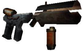 - Initially, the weapon's design was slightly different and the gas cartridges to recharge it were blue.